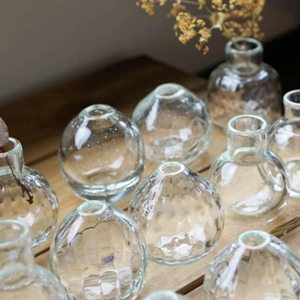 小さい一輪挿しをいくつか並べて飾るのもかわいいですよ。 -