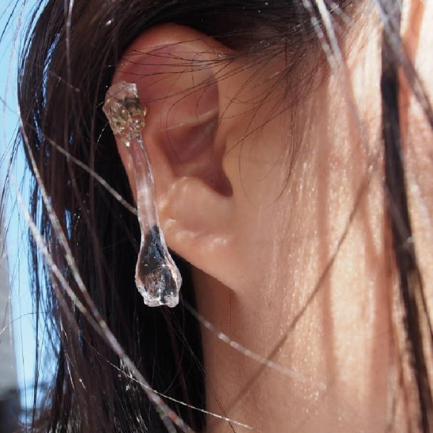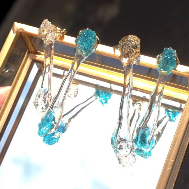 クリア好きにはたまらない透明感のガラス遊びで誕生したイヤカフです! -