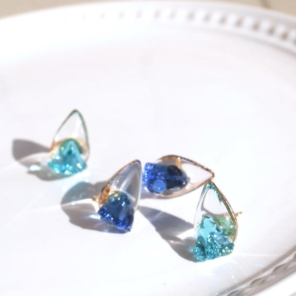 - こちらはシンプルながらもパッと目を引く色とカレットの輝くピアスです。