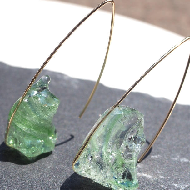 琉球ガラスカレットを選定し、同じ形をしたカレットがないためそれぞれの個性ある形、色味で出来上がりました。