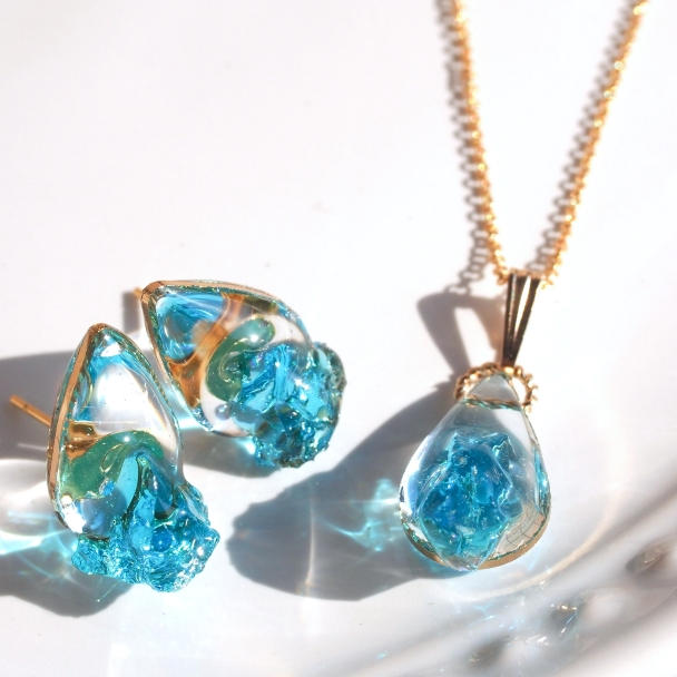 ころんと溢れるしずくスカイブルーCoffret【ピアス&ネックレス】