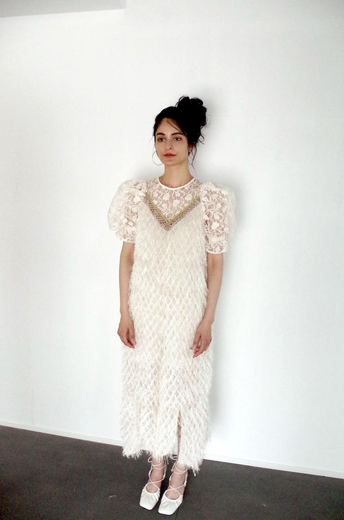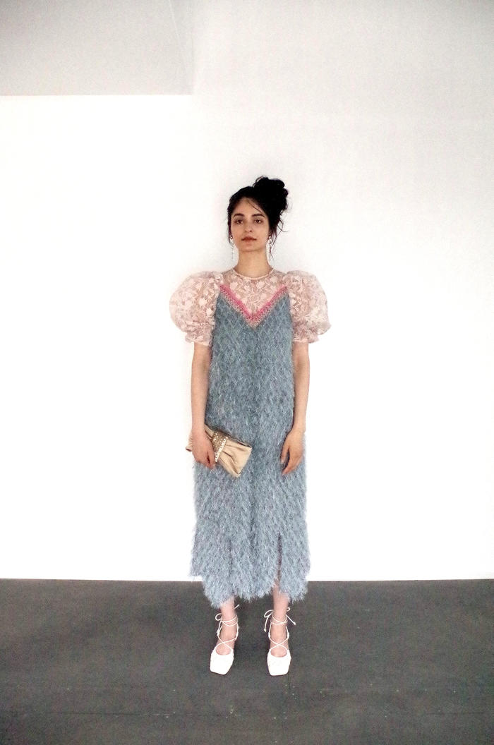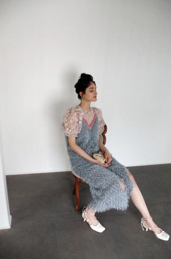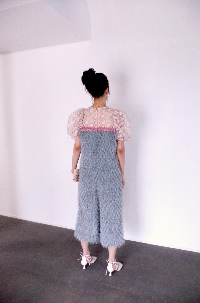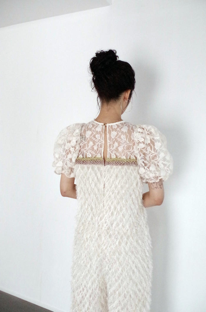 - 珍しいチューリップ柄レースとカットジャガードの組み合わせ。