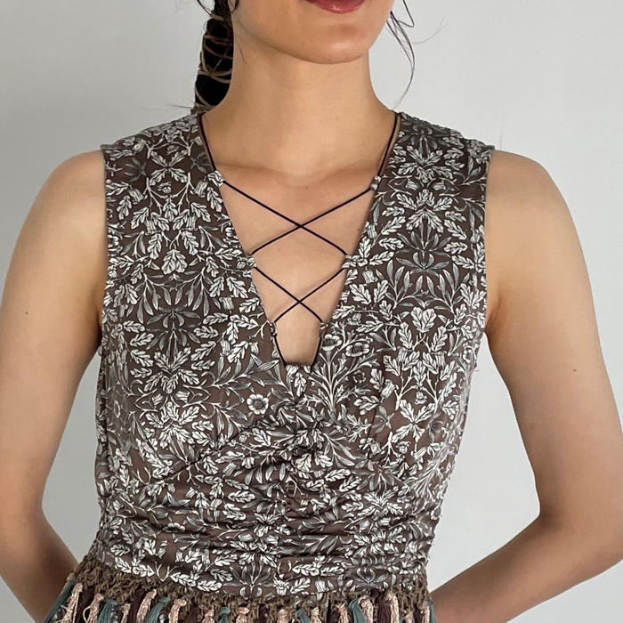 胸元のサテンコードのレースアップが大人っぽく女度を上げてくれます。