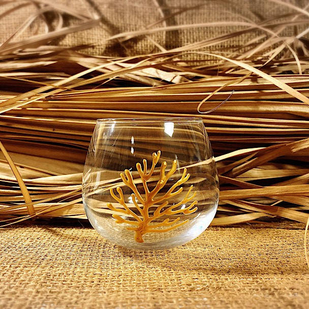 ●okinawan coral ゴールドの3D珊瑚のゆらゆらグラスはワインにとても合います。