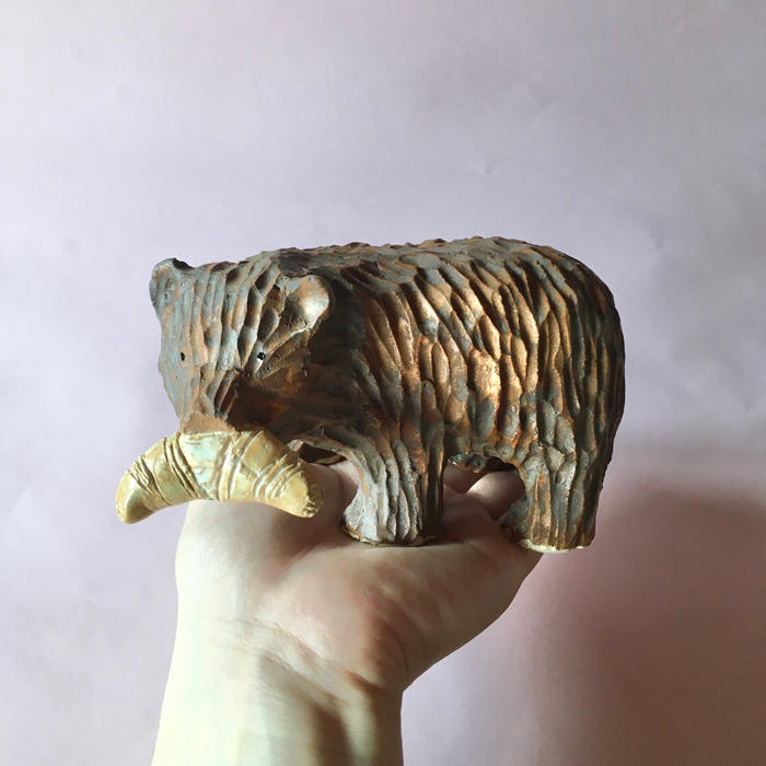 - 木彫り熊がやきものになりました!可愛い手乗りサイズです。