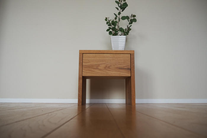 シンプルデザインで、上品な雰囲気もあるオーク材なだけに置き場所を選びません。 -