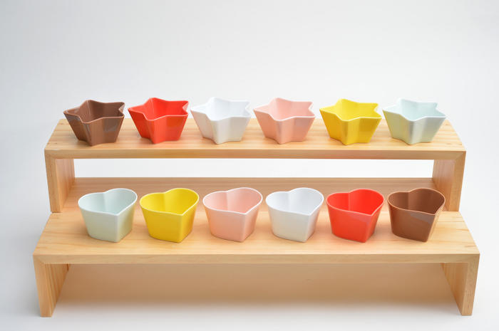 型作りの技術を生かした薄く、軽い器をベースに、世界中に笑顔を届けられるようなカラフルで可愛いデザインを意識した作品づくりがスタートしました。 -