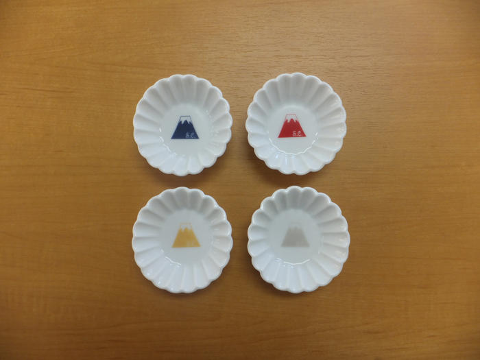 富士山モチーフ カップ(HL) 4色セット(紺、赤、金、銀 各1個) 同色のプチ皿(非売品)を4個無償でお付けします