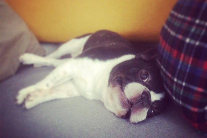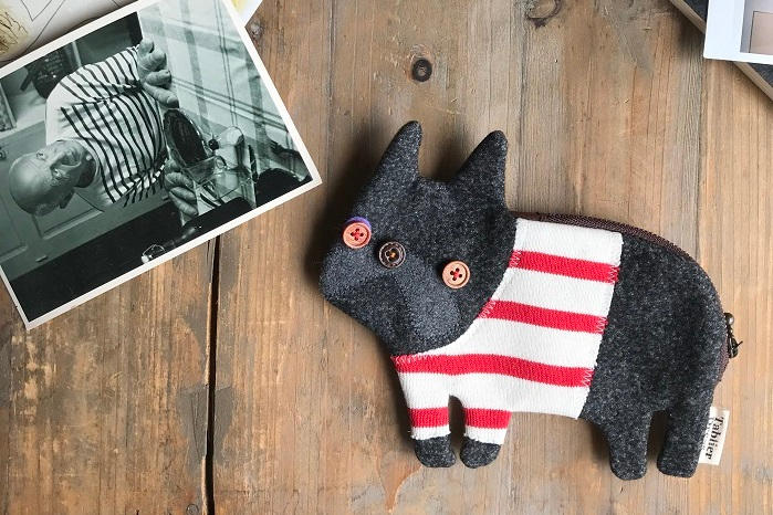 - バッグや、がま口ポーチ、色々なものを作りましたが、この個性的な生地をもっと活かせるものはないかと思い立ち、我が家の愛犬フレンチブルドッグのきびちゃんをモチーフにつくることにしました。