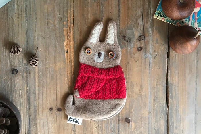 - 赤いセーターを着たウサギは、少し緊張の面持ち。もう少し微笑んで!