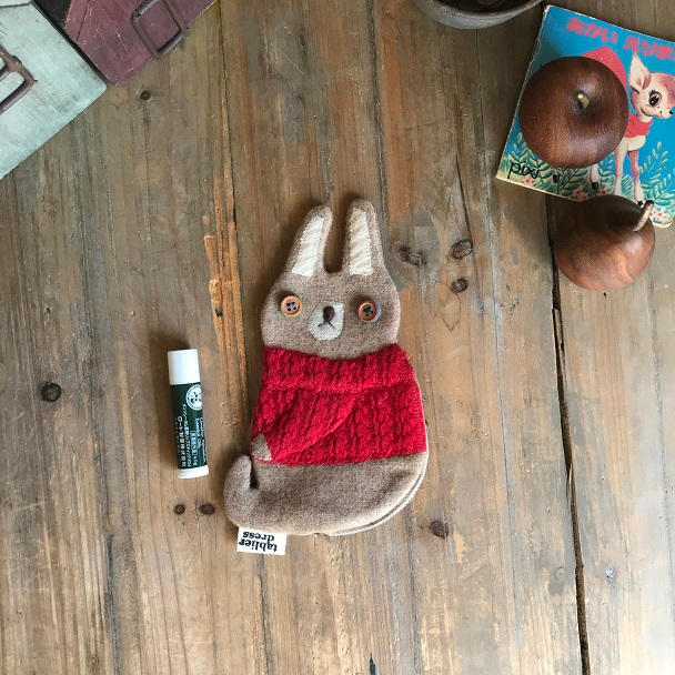 赤いセーターのウサギポーチ