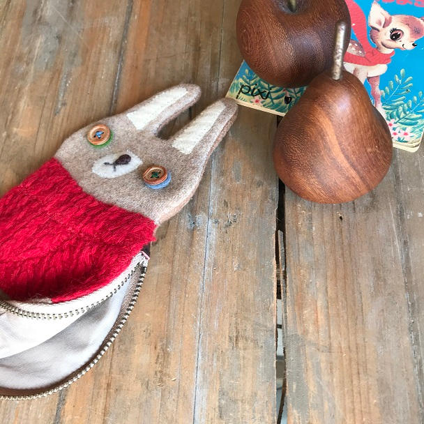 • 赤いセーターのウサギポーチ
