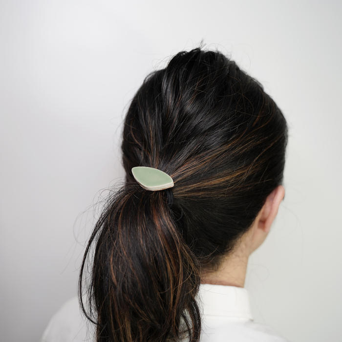 《Creema SPRINGS限定》 ヴィンテージ 美濃焼タイル ヘアゴム Ellipse Green