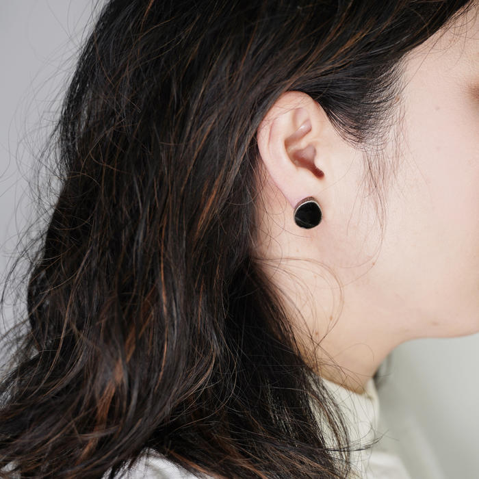 ブラックカラーで小ぶりなティアドロップ型が可愛くもクールな印象です。