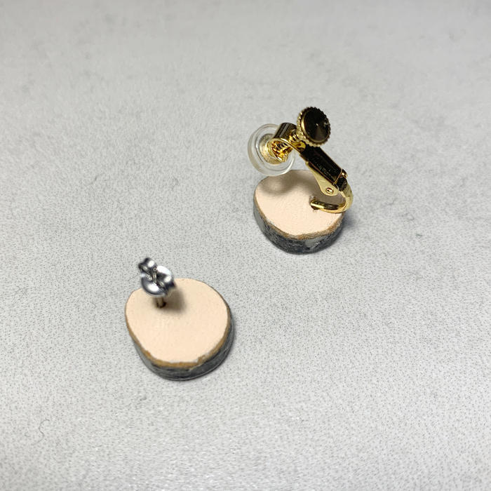 Type : イヤリング(ネジバネ式) materials : 磁器 牛革 ( 金具部分 : 真鍮+ gold plate *シリコンキャッチ付属 )
