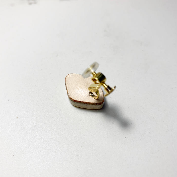 Type : イヤリング(ネジバネ式) materials : 磁器 牛革 ( 金具部分 : 真鍮+ gold plate *シリコンキャッチ付属 )