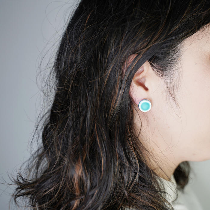 - シンプルながらも端の細かい形状で華やかさもあるデザインで、色々なお洋服にも対応できると思います。エメラルドグリーンも爽やかで綺麗な色合いです。