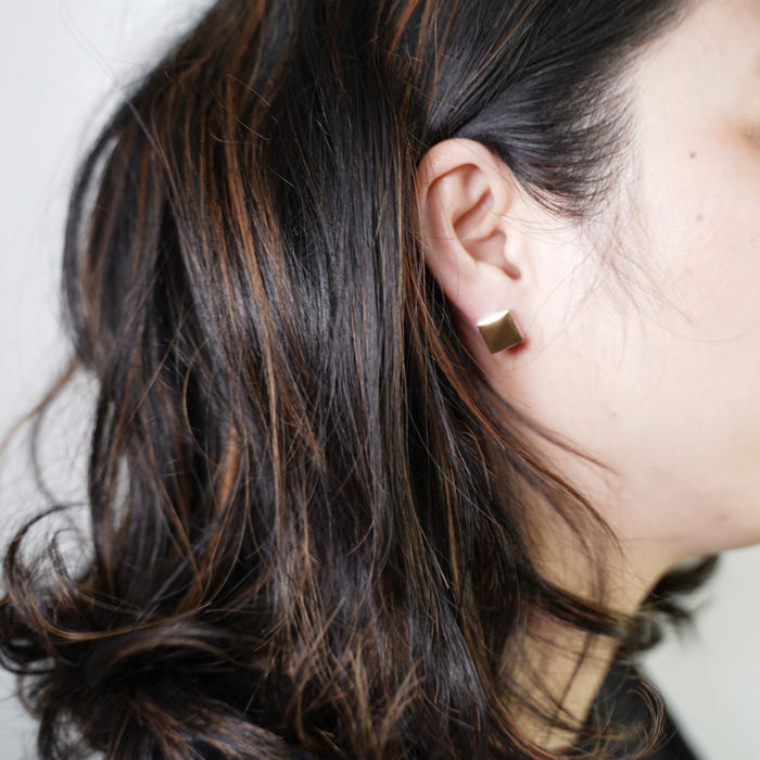 TAGAKU オリジナル絵付けタイル小 ピアス or イヤリング : Gold XS