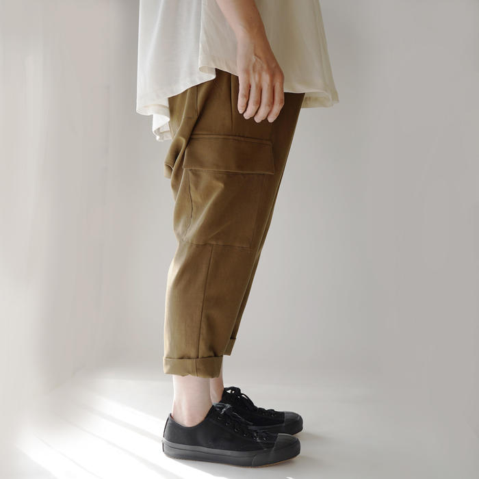 シルク50%入りのサルエルカーゴパンツ