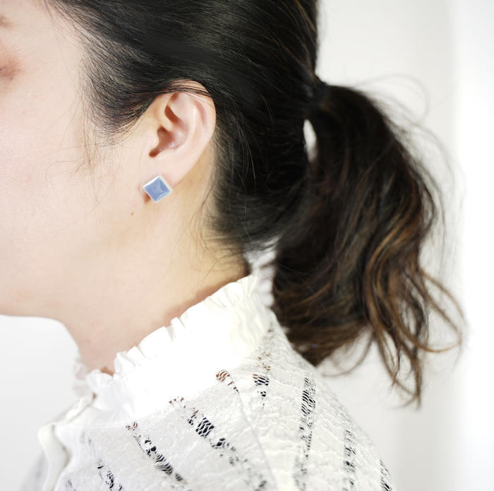 materials : 磁器 牛革 ( 金具部分 : 真鍮+ gold plate *シリコンキャッチ付属 )