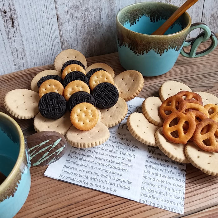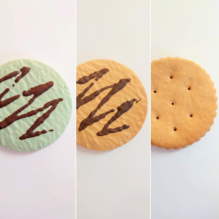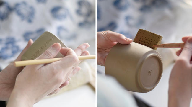 陶磁器の製造を一から学ぶべく、専門校や研究施設で素材や成形方法を学びました。その学びの中で現在制作している陶器クッキーの核となるものが生まれました。陶土という素材の研究の中で何か可能性を感じ、よりお菓子をリアルに再現するために独自に陶土の調合実験を繰り返す日々が始まったのです。 -