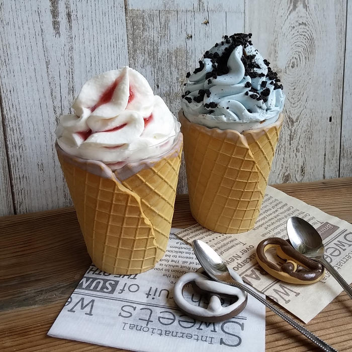 ビスケットマグカップは171通りの組み合わせ、ワッフルコーンカップは6通りの組み合わせから選べるオリジナルペアカップ作りを楽しんでいただけます。