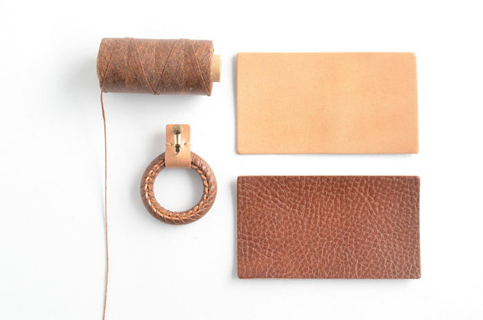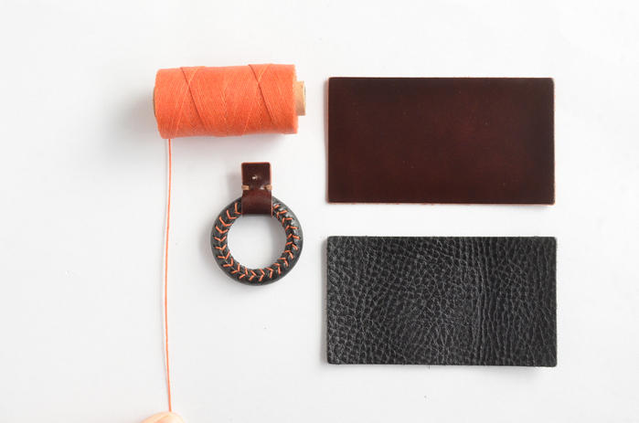 - ドーナツ部分の革は④Brownで、上の部分の革は①Naturalで、ステッチを⑥ブラウンで作りました。
