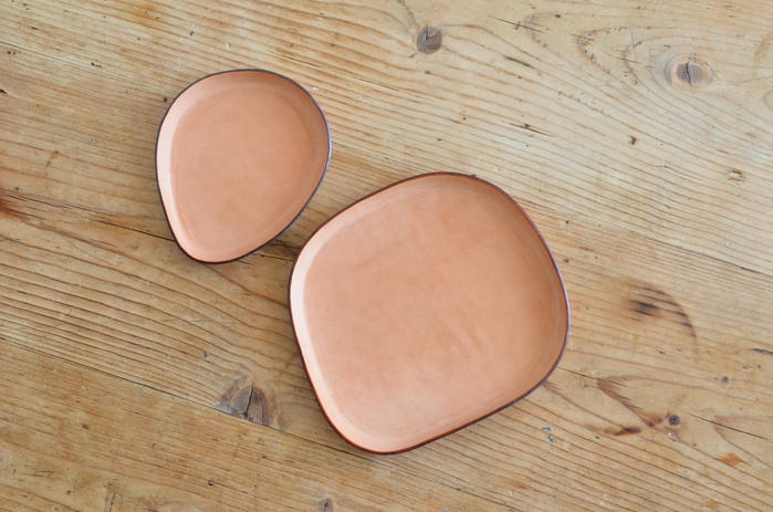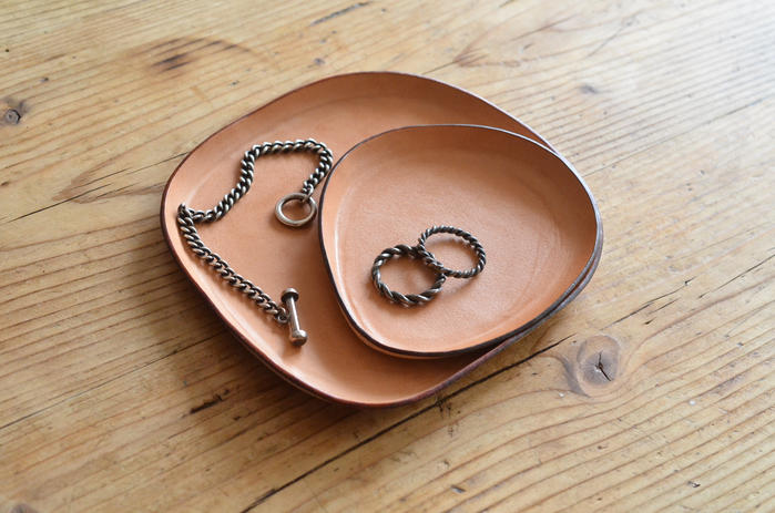 - 水に濡らすことで形状を記憶するというタンニン鞣しの革の特徴を活かして、トレーを作りました。