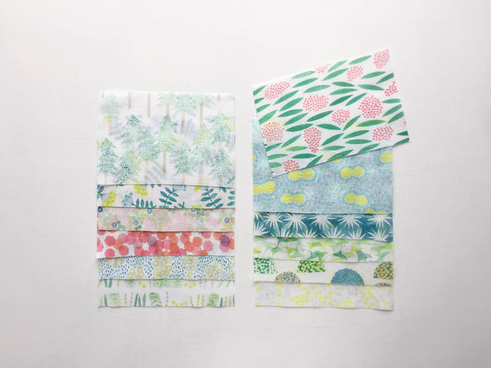 - totoganashiのテキスタイルで人気の柄を集めた、ちいさな生地セットをお届けします。