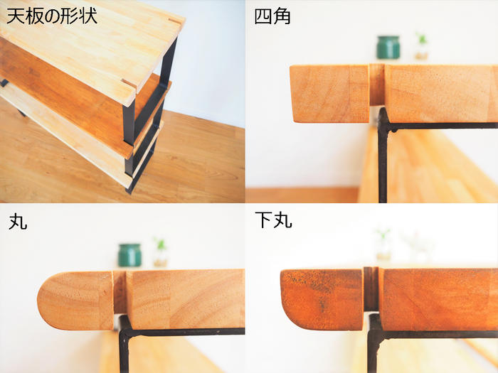また、デザインに更にこだわりたい方に、天板の形状を3種類からお選び頂けますので、より自分好みの作品になるかと思います。