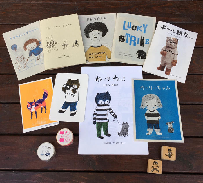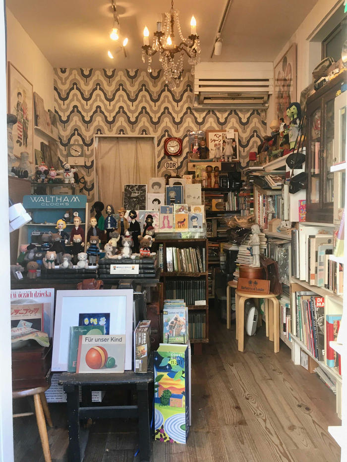 置いてある古本はイラストの資料として持っていたアートの本や写真集、デザイン関係の本などの他、買い付けにいくヨーロッパのいろいろな国で仕入れた古い絵本などが中心ですが、趣味のフィルムカメラや腕時計、雑貨、オリジナルの商品、自作のZINEなども置いてます。