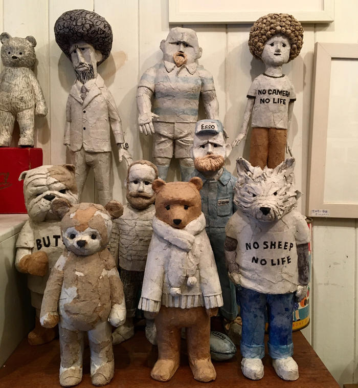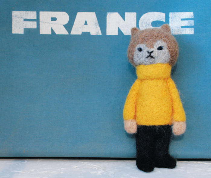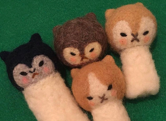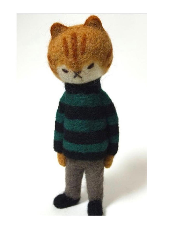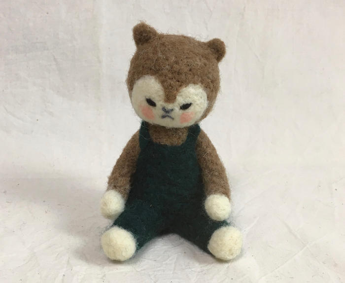 - そして8年ほど前、お店で作品展示をしてくれたぬいぐるみ作家さんに勧められたのきっかけでニードルフェルト作品を作り始めました。作るものは人や動物が主ですが、イベントやお店での展示販売を主眼に置くとやはり可愛らしいものがいいのかなと思いますが、その表情や仕草にはちょっと小憎らしいスパイスを効かせたいときもあります。