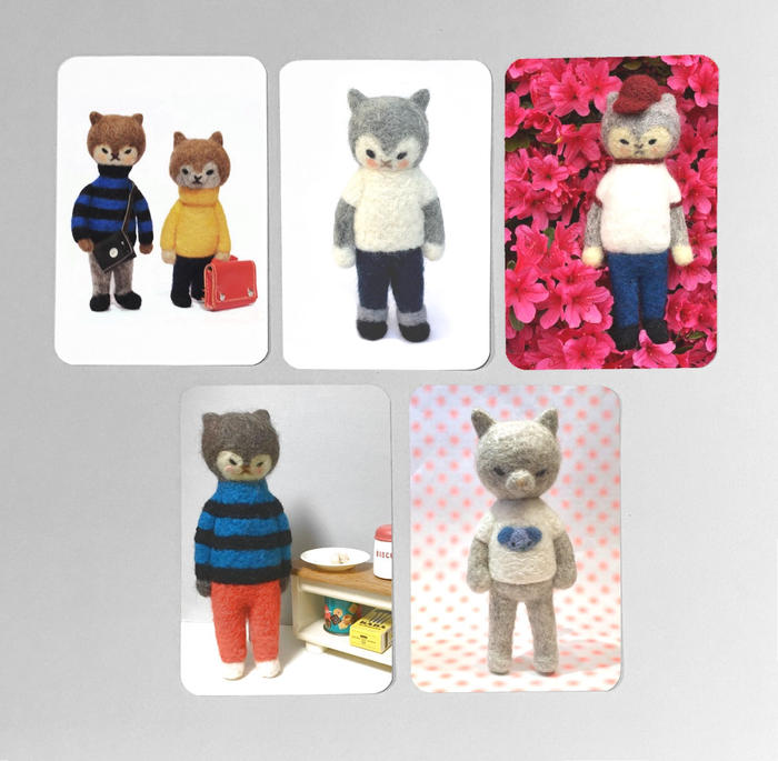 - フェルト人形のねづねこちゃんを撮影した絵柄のポストカード5種類のセットです。