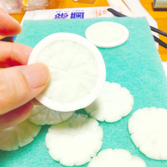 - 柑橘系の果肉などは「すけるくん」という粘土を使います。