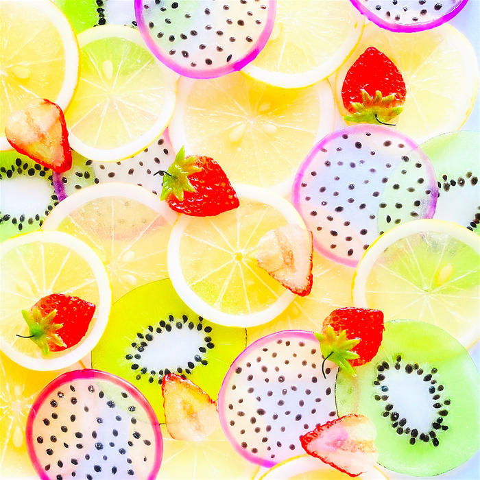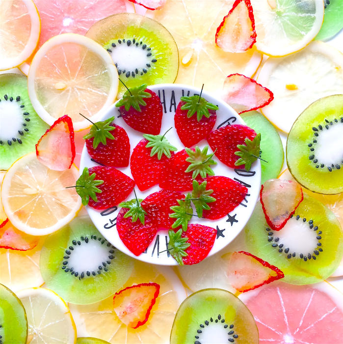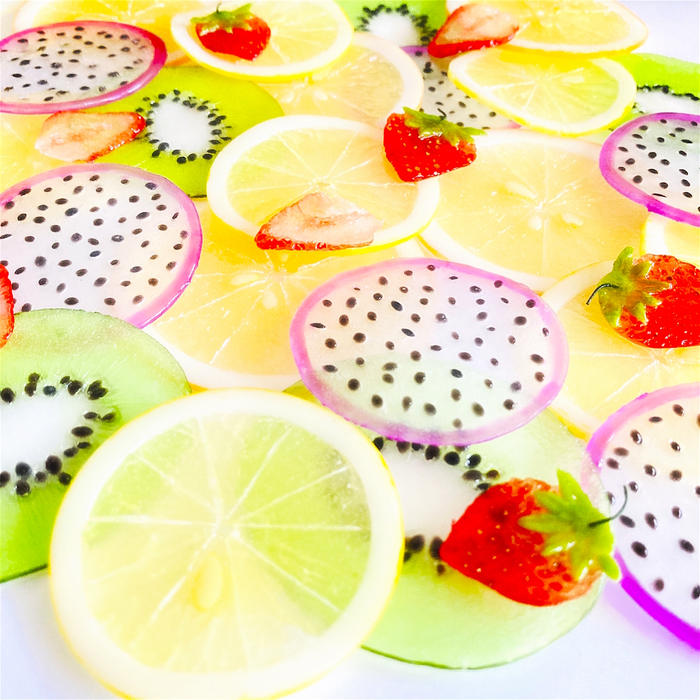 まるでフルーツゼリーみたいに仕上がりました。デザインは2種類(フルーツミックス・ストロベリー)