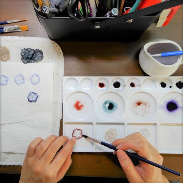 - 花びらの染色。温度や時間にも簡単に左右される作業はとても奥深いです。