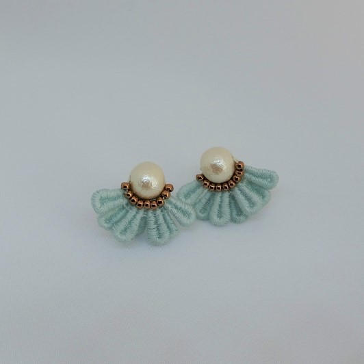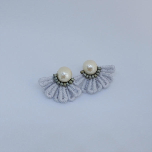 - コットンパールがおめかししたようなピアス/イヤリングができました。