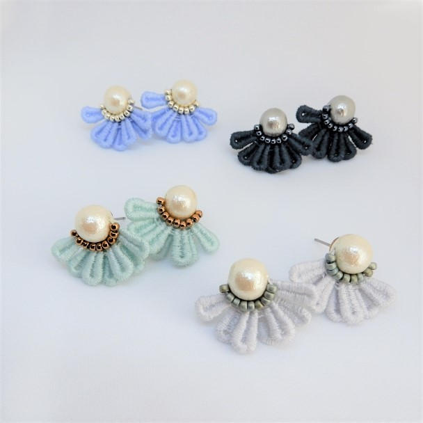 コットンパールは定番のキスカカラー、ブラックのみシルバーのコットンパールを使用しています。 -