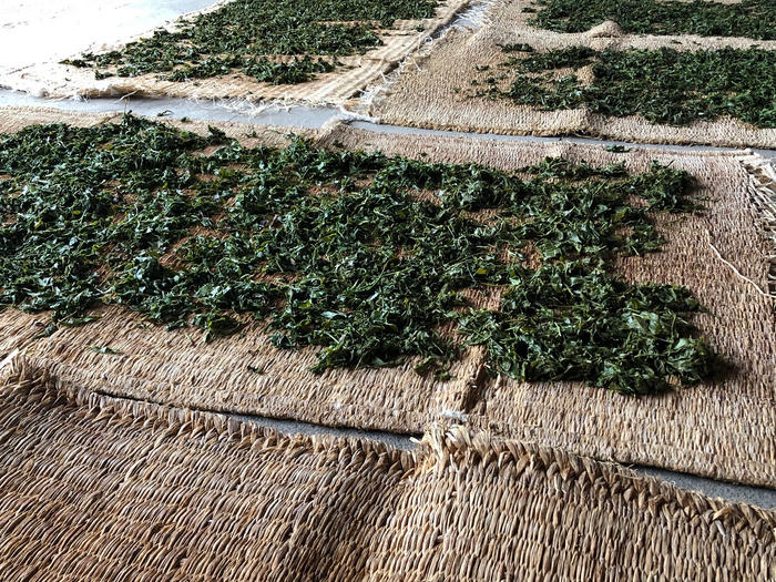 - 人の手を離れ、高く伸びる茶の木。今年5月、そのお茶を摘み、手揉み、天日干しの