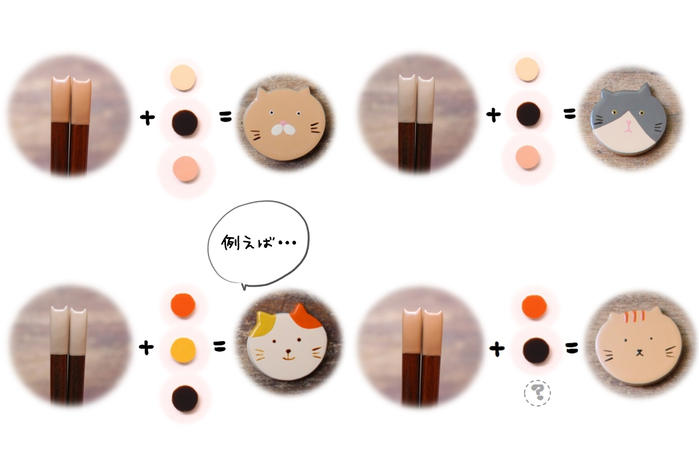3色の猫箸からお好きな1膳と、10色の色漆の中からお好きな3色をお届けします。