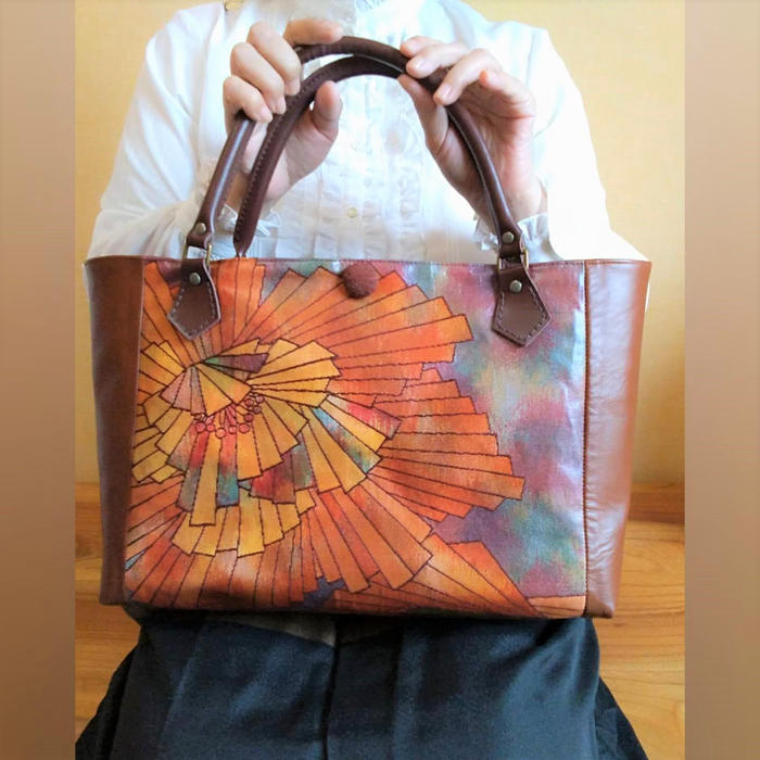 日本の伝統文化の一つである、着物や帯ですが、生活様式の変化で、最近は着る機会も減ってしまいました。 「帯をリメイクしてバッグにしたら、いまの生活様式にも取り入れやすいのでは?」と思ったのですが、 帯の模様も様々で、「派手すぎるもの」「それだけでは、バッグにしては寂しいもの」もあります。 そこで、本革を加えて、素敵なバッグを作りたいと考えました。