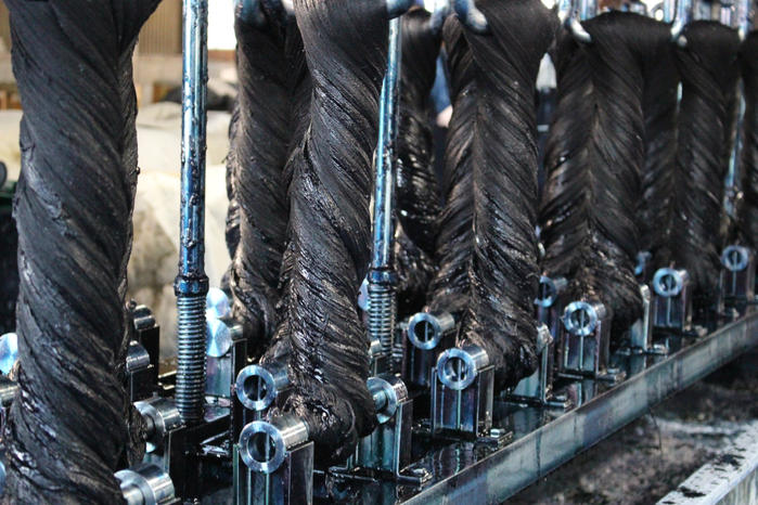 この藍染工場の織物は、3か月の長い期間をかけて完成する藍染織物です。