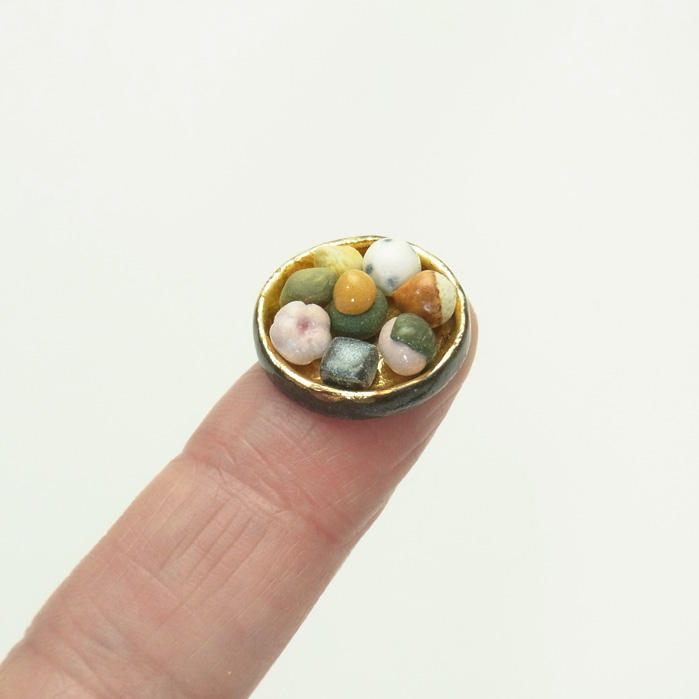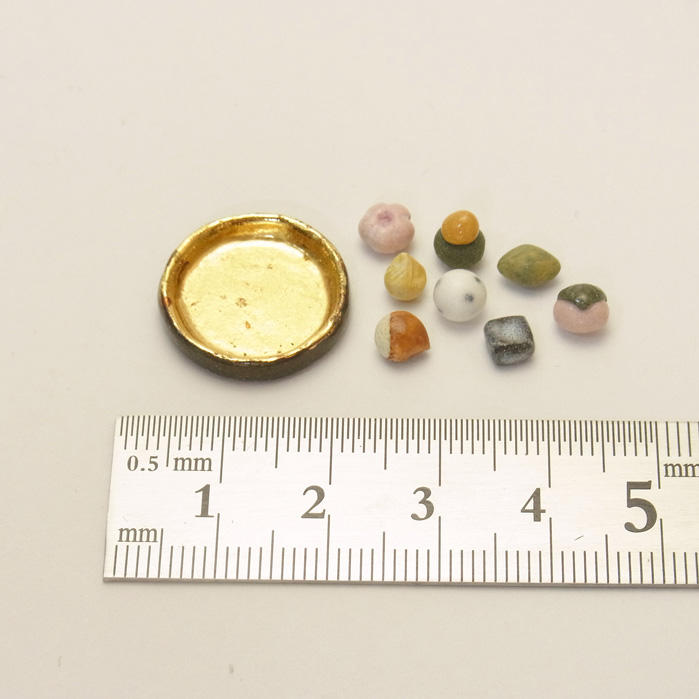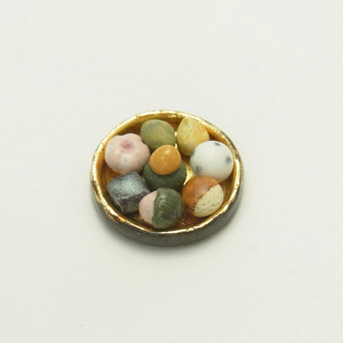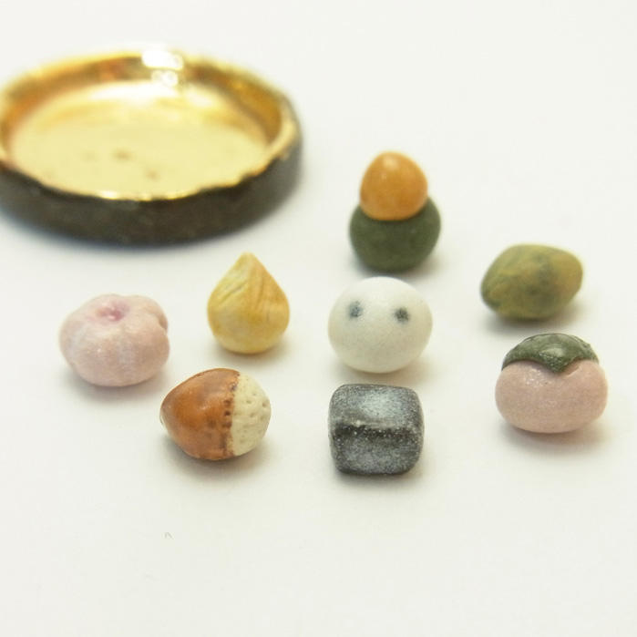 - ミニチュアドールハウスに飾っていただける12分の1サイズの「和菓子セット」です。